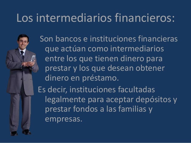 Los intermediarios financieros son el conjunto de instituciones especializadas en la mediación entre los prestamistas y los prestatarios últimos de la economía, transformando una parte de los activos primarios en activos indirectos o secundarios más idóneos a la demanda de los ahorradores últimos de la economía. Los activos financieros son emitidos por las unidades económicas de gasto con el propósito de cubrir su déficit, estos activos pueden ser adquiridos directamente por los ahorradores últimos de una economía. Sin embargo, en la medida que se desarrollan los sistemas financieros, aparecen los intermediarios financieros, una serie de instituciones o empresas que median entre los agentes con superávit y los que poseen déficit, con la finalidad de abaratar los costes en la obtención de financiación y facilitar la transformación de unos activos en otros.